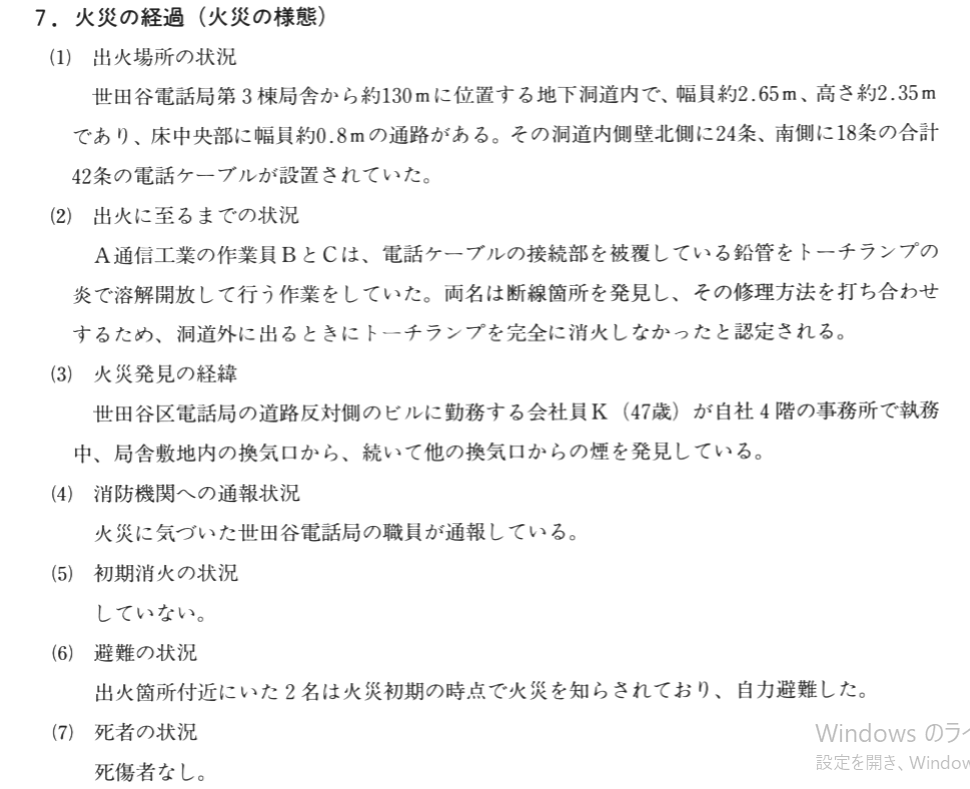 世田谷局ケーブル火災
