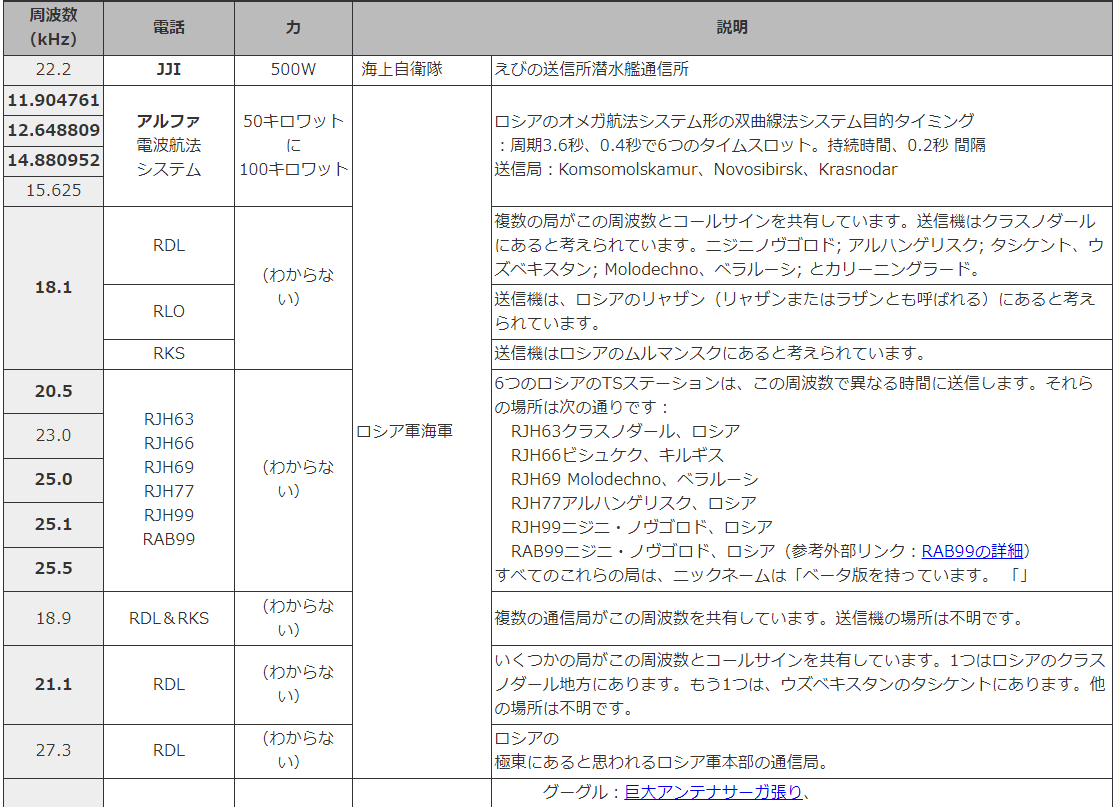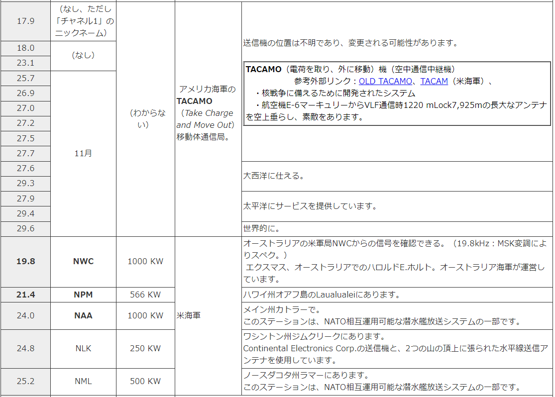 - アルファ航法(11.9 - 15.6kHz)