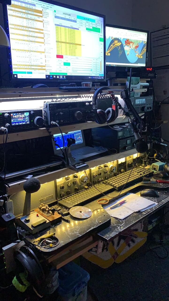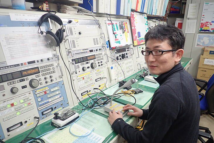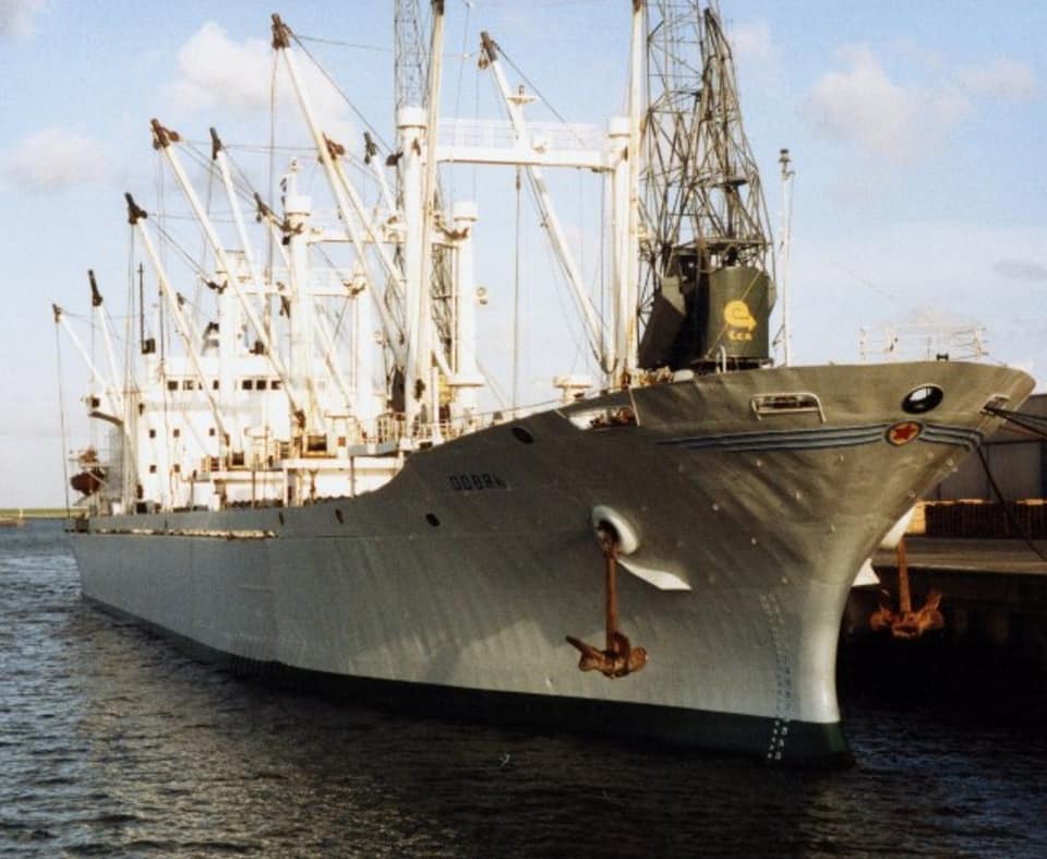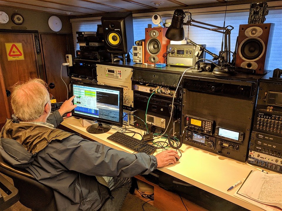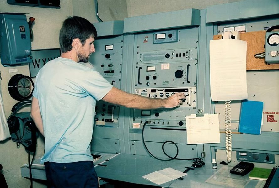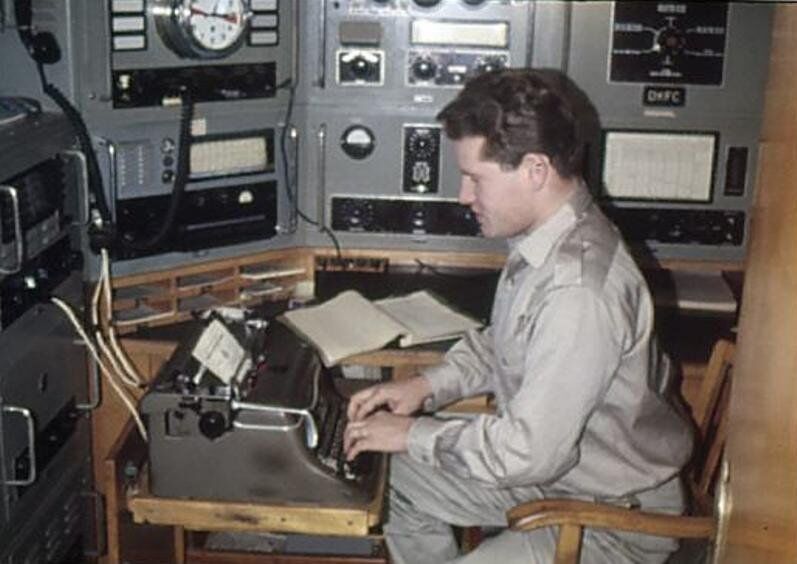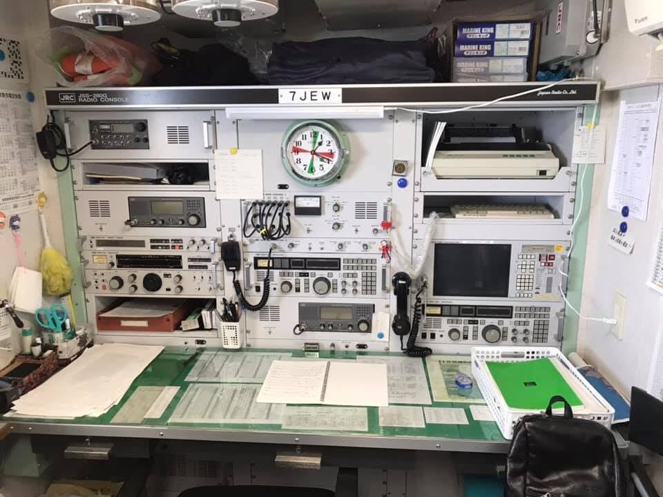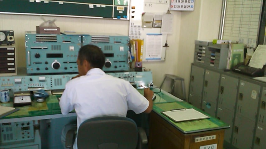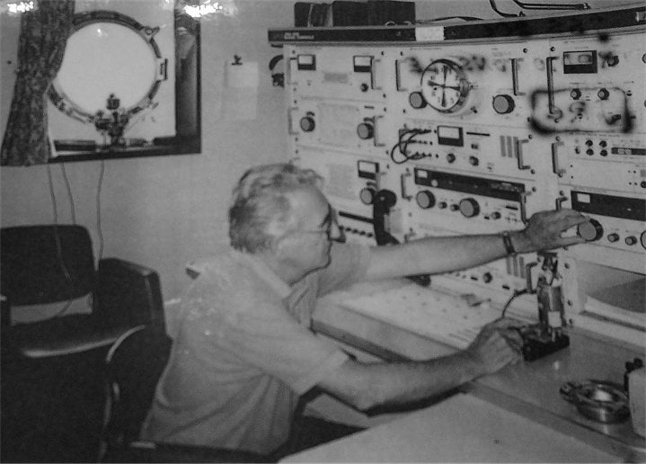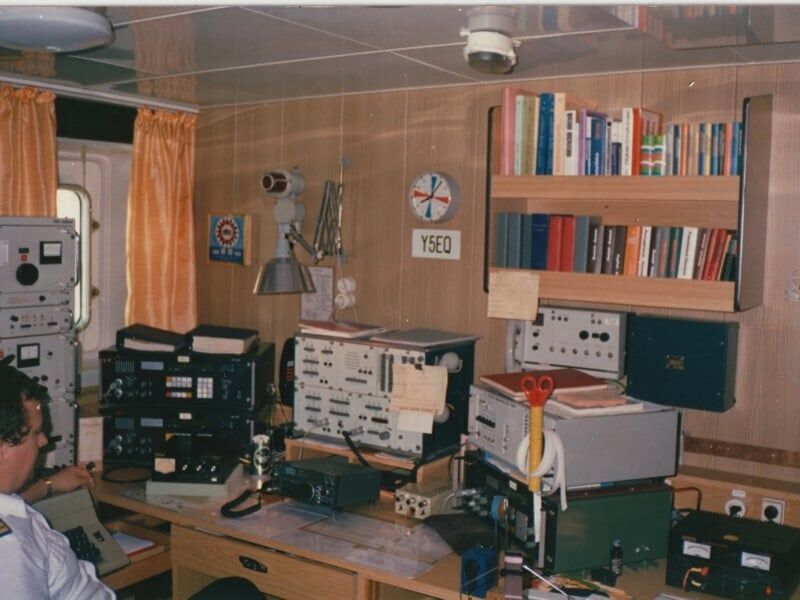 M/V "SOHLAND" c/s Y5EQ, old East Germany ship. Radio Officer in the pic is playing with his ham radio gears...