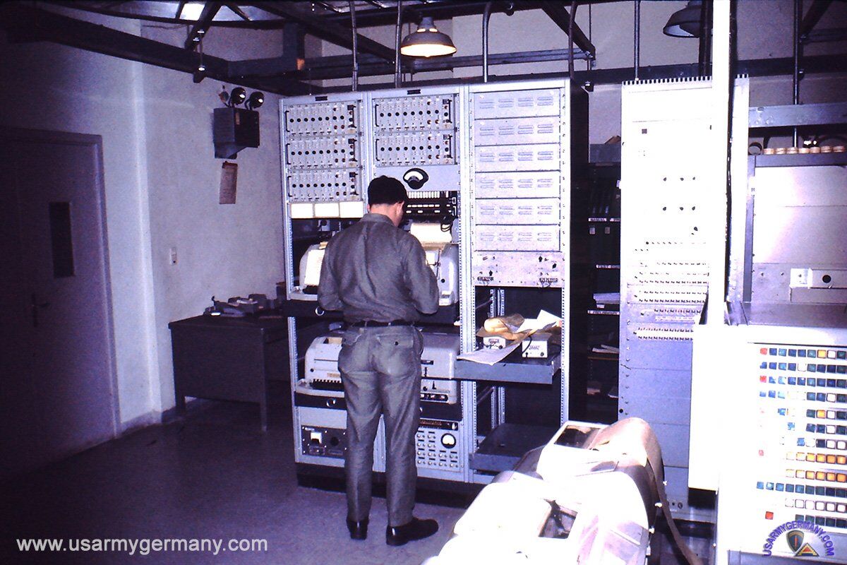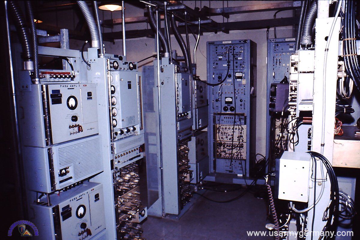 the left of the main transmitter DEBEG 7101 for MW telegraphy, GW telephony and telegraphy / telephony in all marine radio HF bands. The output stage is operated with 4 4CX250B and provides 1.5 KW PEP with SSB and 1.2 KW with KW telegraph operation. The AA-204 auto alarm receiver is right under the operator's nose (Lothar Pietsch) . In the middle in front of the radio operator there are two Debeg 7201 all-wave receivers , one with a raster insert and one with an interpolator for tuning between the 100 Khz rasters. Above the receiving antenna patch panel. In the top left boxAlarm sign keypad into which the position of the ship and other brief information can be entered using the keypad and, if necessary, the main or emergency transmitter can be used with this text. The NF distributor is located underneath. The photos below show the same station from different perspectives.