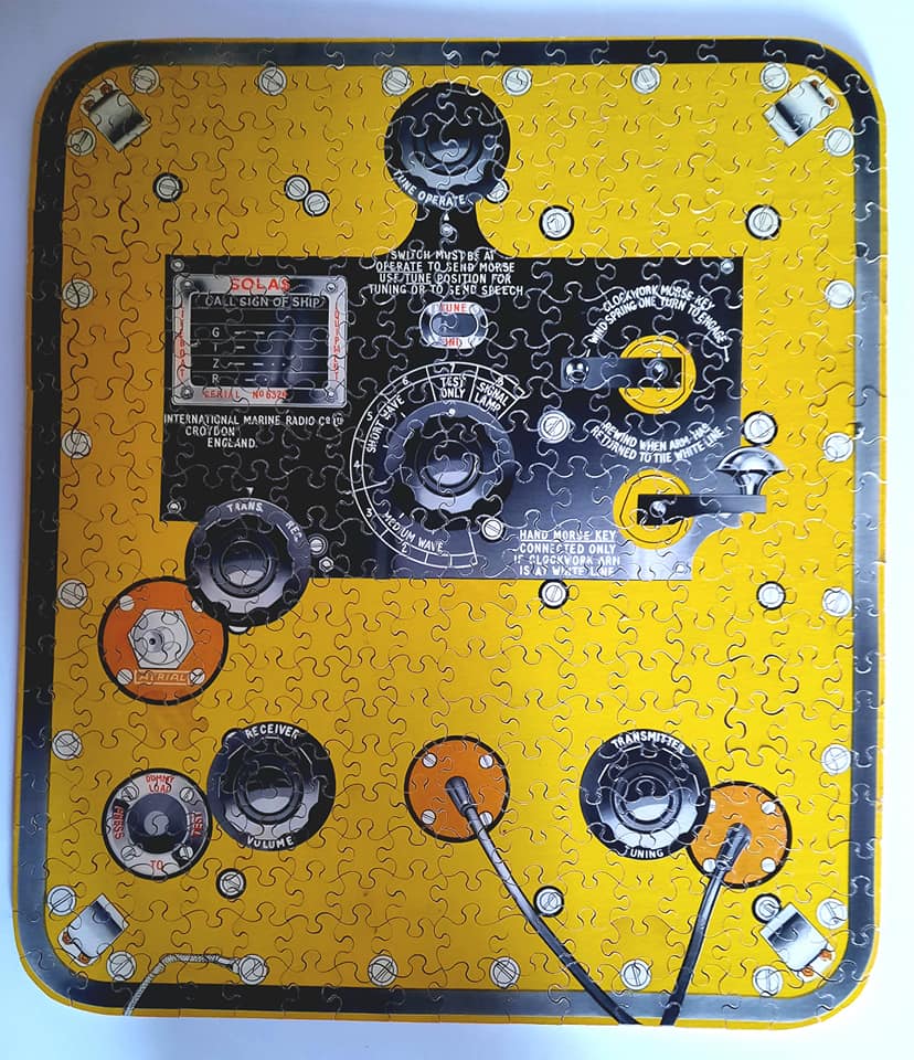 I picked up this puzzle the other week of a lifeboat set by the International Marine Radio company. It came in a nice wooden box with the inscription 'To the Captain, Officers and Crew with our good wishes'. The callsign GTZR on the puzzle appears to be the group call for IMRCo ships. I am assuming these were produced as gifts to use on board their fleet ships and was of their 'SOLAS I' lifeboat set.