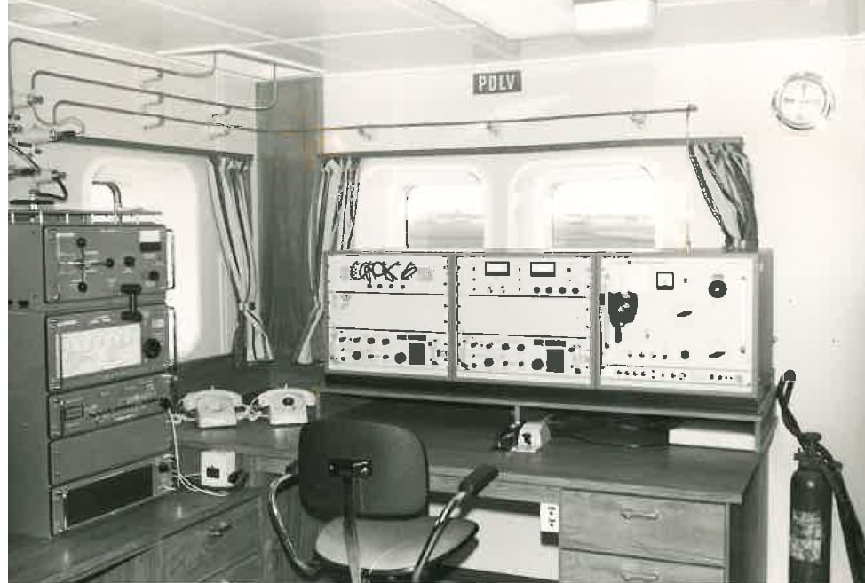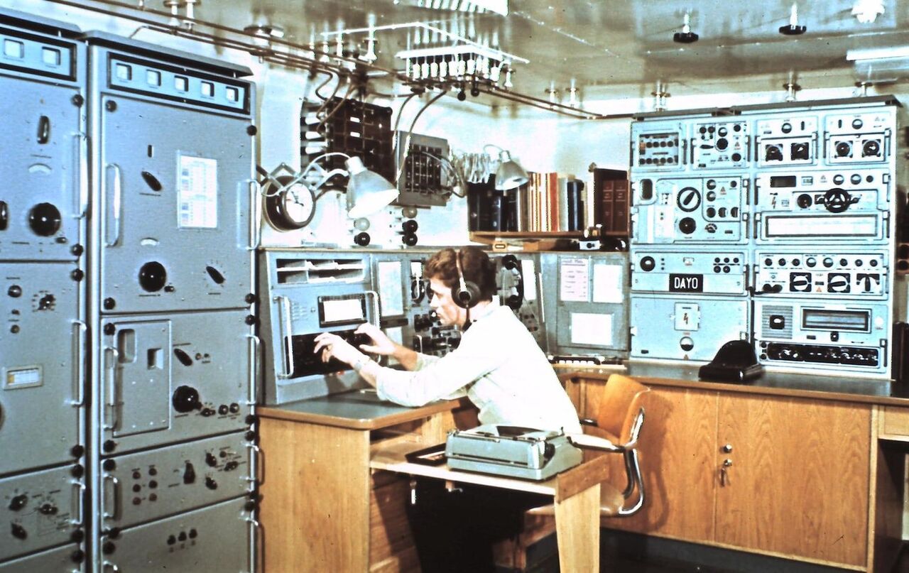 Well equipped radio room from the Icelandic stern trawler Kaldbakur EA-301, call sign TFBC. Photos from 1977-1978.