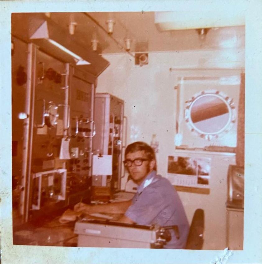 Me onboard M/T Riogas/DPRG around 1985 tx/rx Debeg with Magnavox Satcom