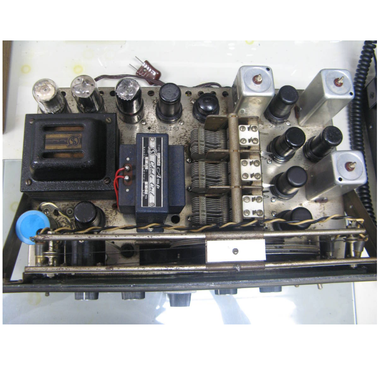 アンプは3つのチューブを使用します:2つの1U4五極管と1つの3Q4五極管。ボリュームコントロールは、ポテンショメータではなく、切り替え可能な減衰器を介して行われます。