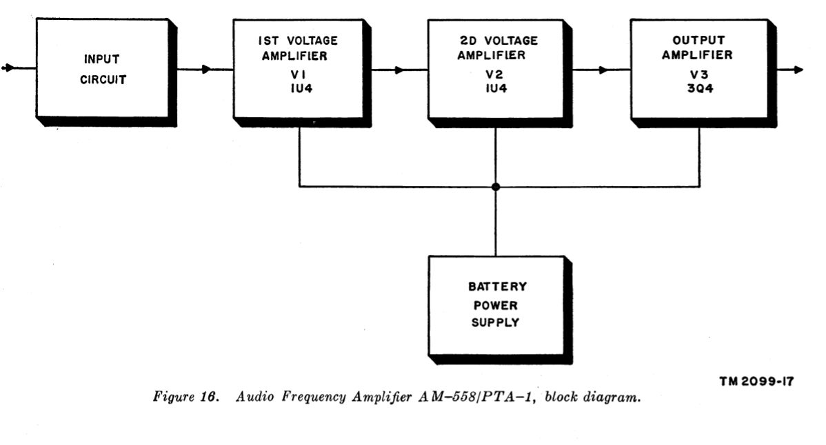可聴周波数増幅器AM-558 / PTA-1、概略図。