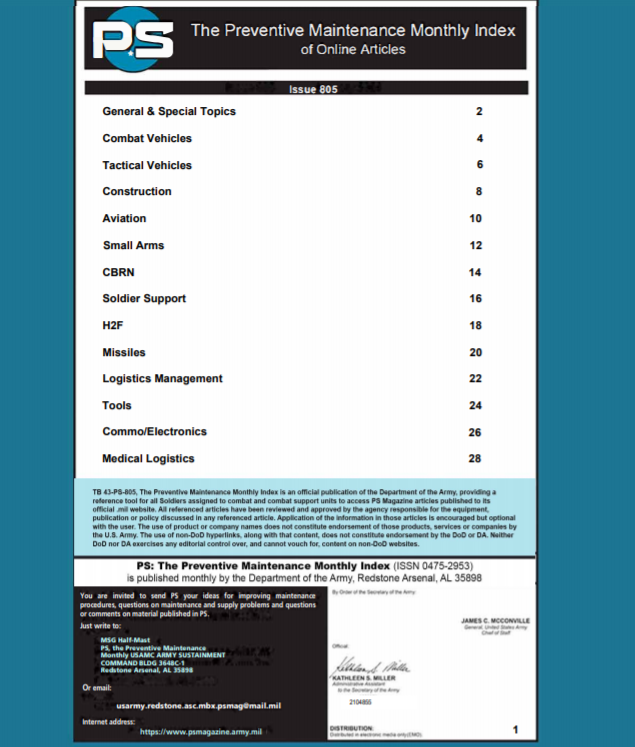 米軍PSマガジン US Army’s PS Magazine PS: The Preventive Maintenance Monthly