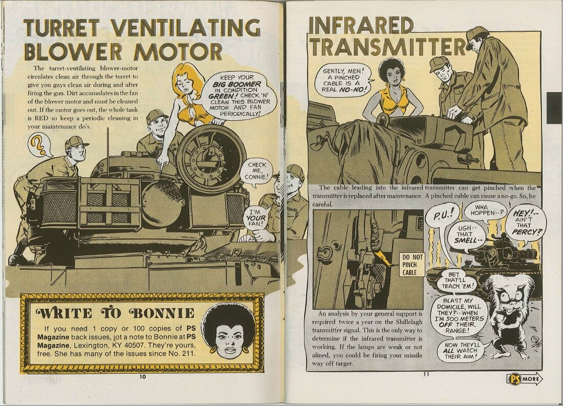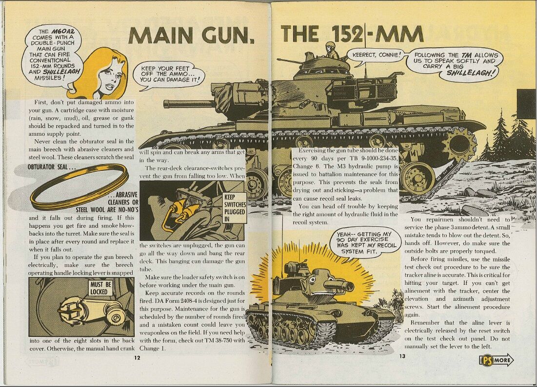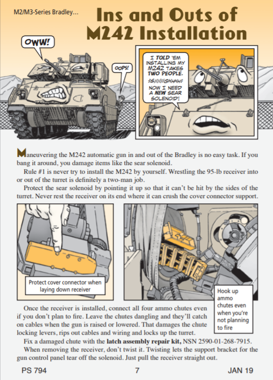 米軍のPSマガジンです。PSは追伸とか追記のPost scriptのことで、フィールドマニュアルやテクニカルマニュアルとは別の補足的内容を取り上げています。1つの号に戦車のキャタピラ、ライフルの弾薬、空調システム、ヘリコプターの塗装などバラバラな項目がランダムに入っています