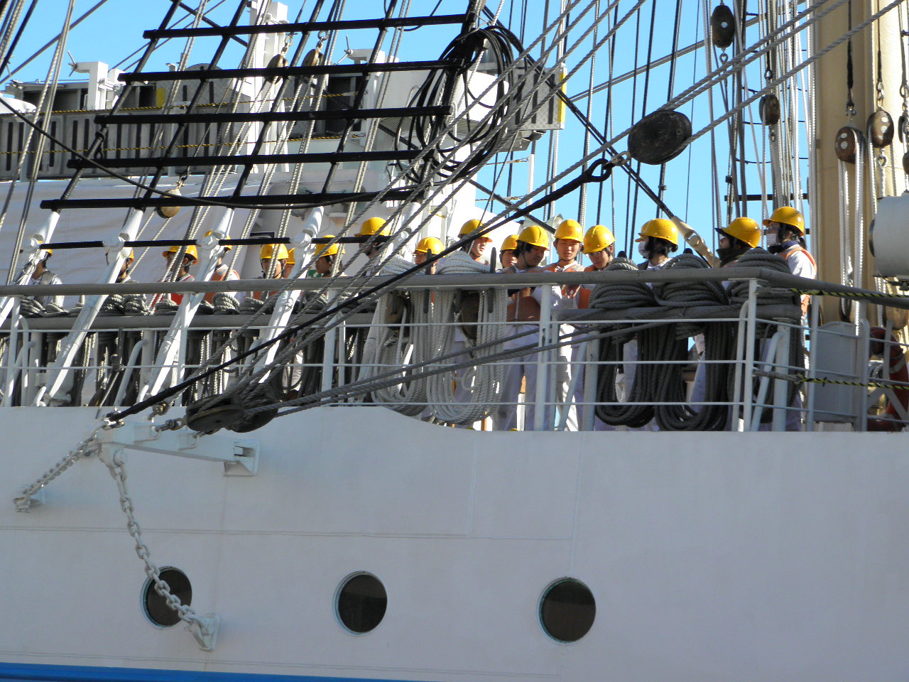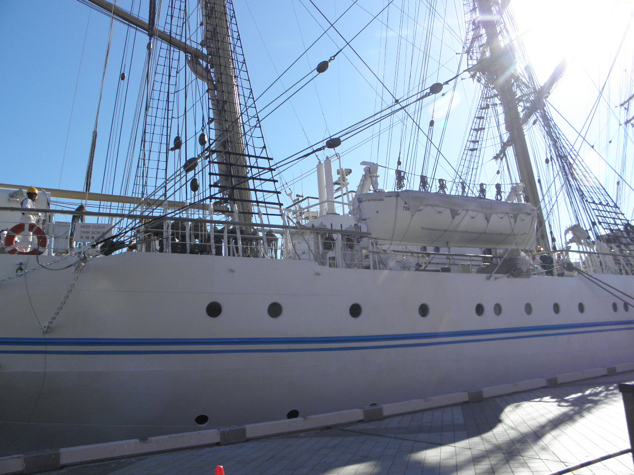 約50mの高さのマスト4本と36枚の帆を備え、“海の貴婦人”の愛称で親しまれています。航海訓練所の練習船として実習訓練などに利用しています。