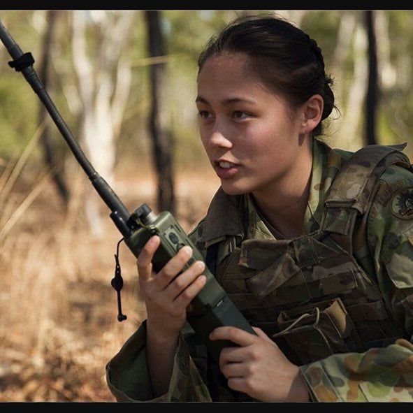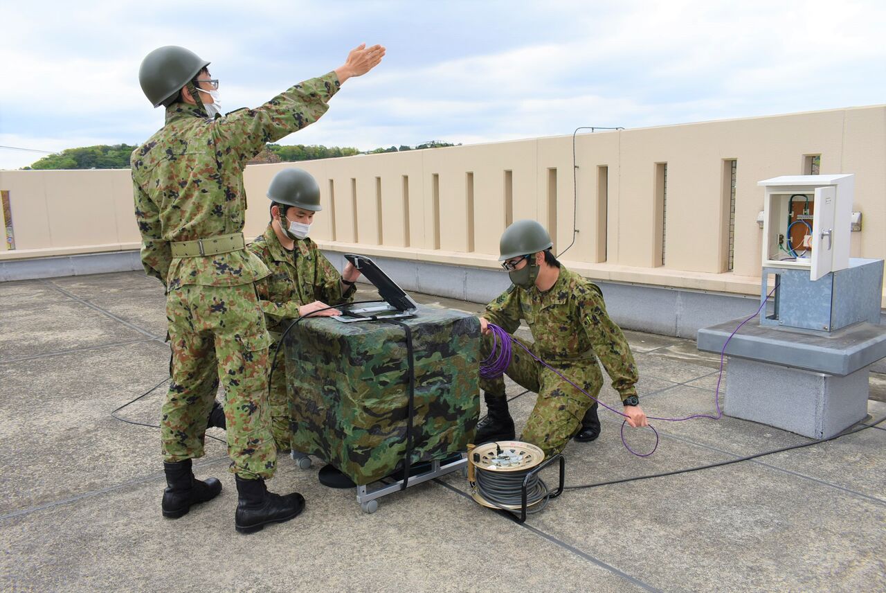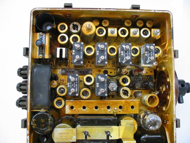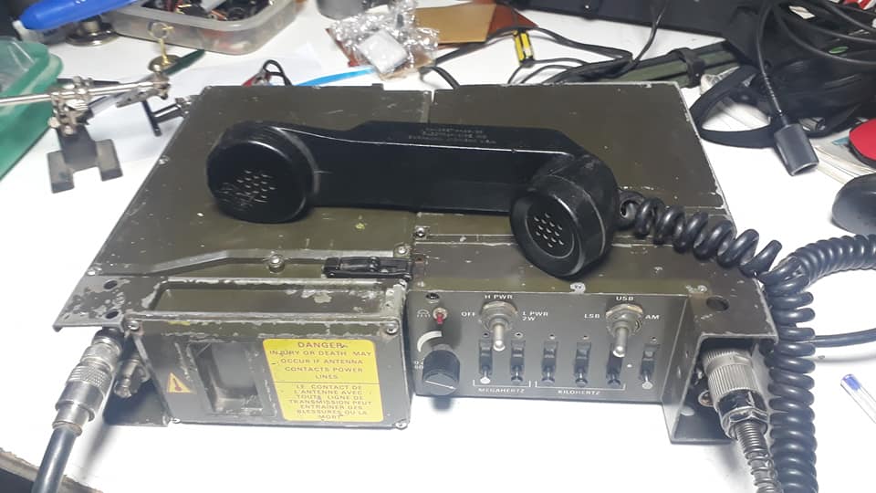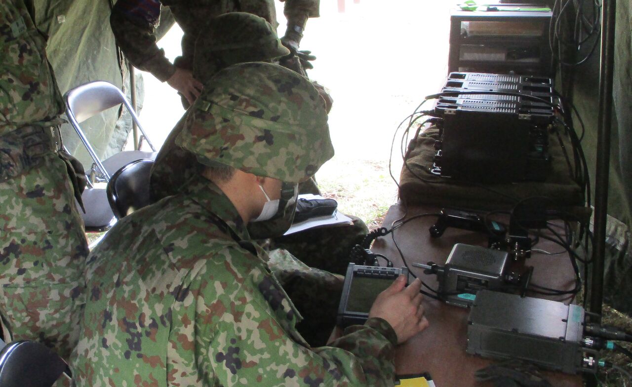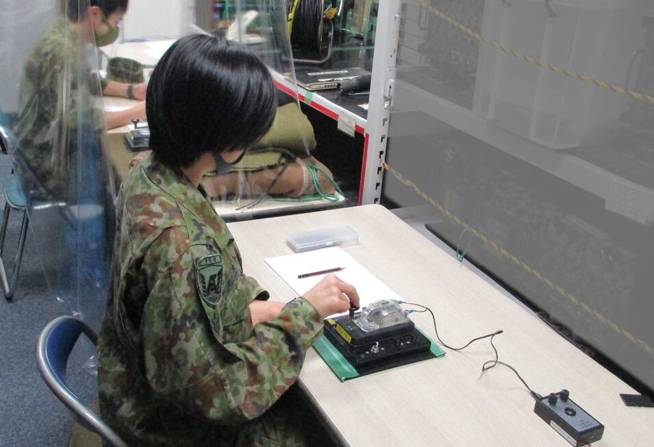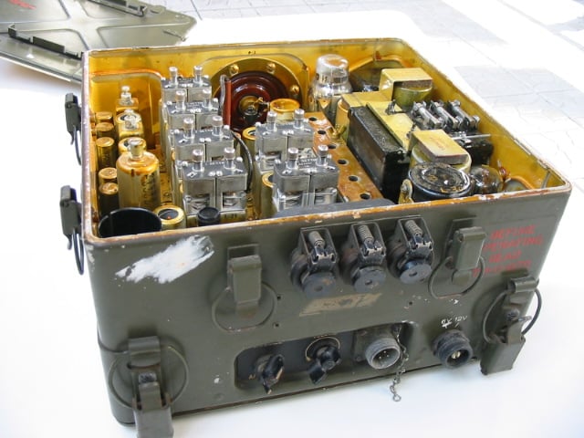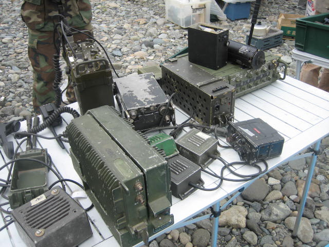 US Army soldier technician, of 124th Signal Battalion,works on a radio set durin...