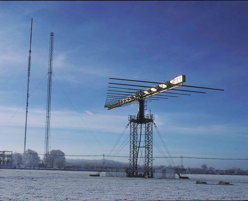 Square antennas, MRC 85 signal van, and AN / TRC 90 antennas at a STRATCOM site i...