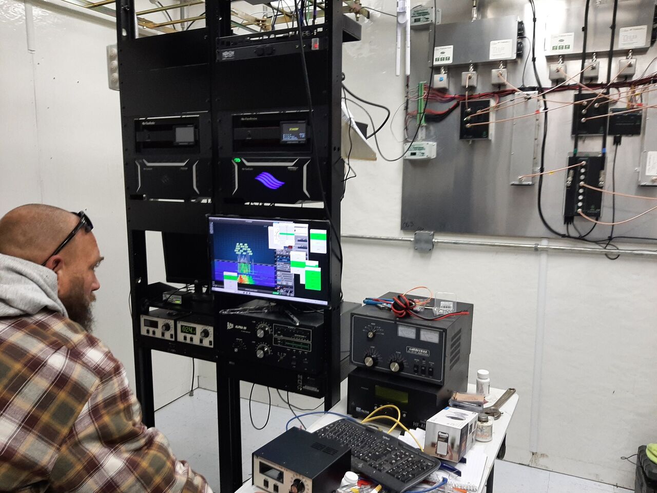 送信機はウィスコンシン州とミシガン州に建設されました。花こう岩の岩盤に打ち込まれた木製の支柱に張られたアンテナの長さはおよそ22~44kmで、通電するとELFを発信する巨大な磁場が生成されました。つまり、巨大な岩盤をまるごと無線通信用のアンテナにしてしまうというわけです