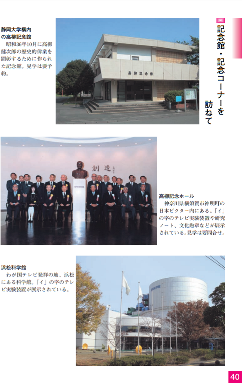 浜松市中区城北にある静岡大学浜松キャンパス内に静岡大学高柳記念未来技術創造館があり、高柳の業績の一部が収蔵・展示されている。また、同館内には、IEEEマイルストーンの銘板、胸像がある。