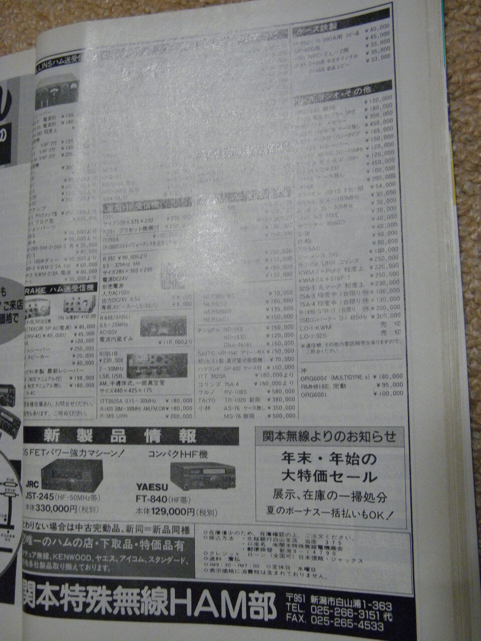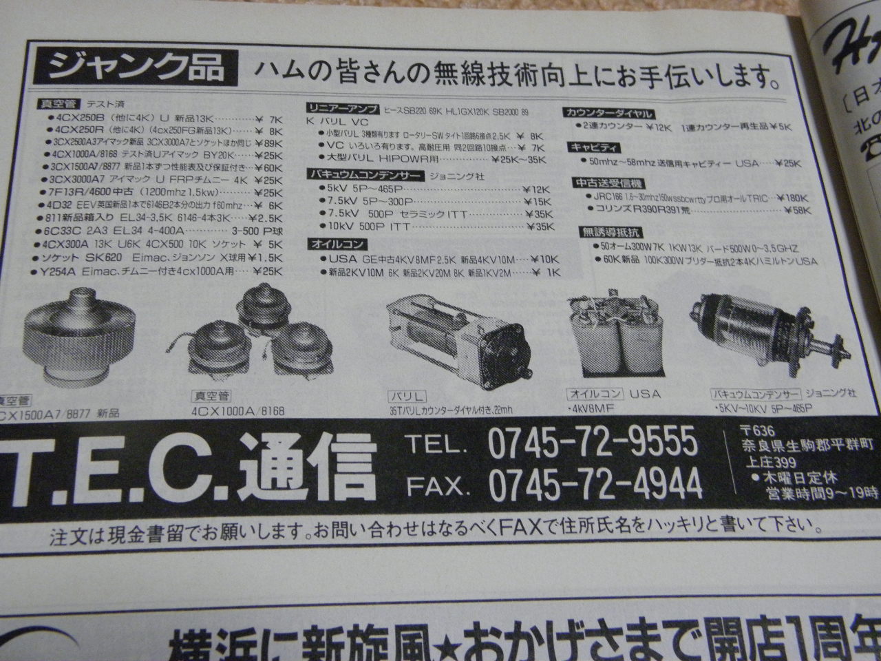 いま整理してたら1993年(平成5年)のCQ誌12月号が出てきて26年前の広告にちょっと釘ずけ